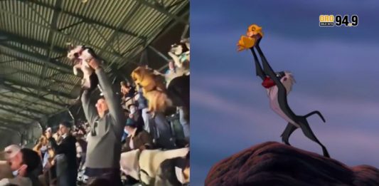 Hinchas llevan a sus perros al estadio para poder recrear la famosa escena del Rey León
